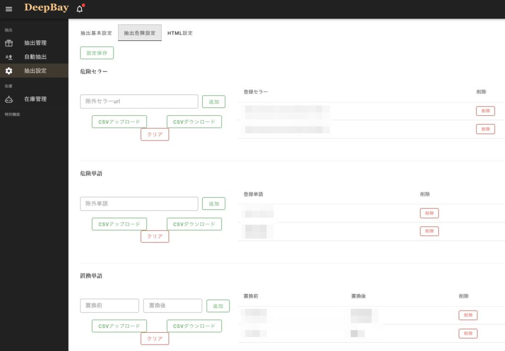 登録した単語を含む商品は、抽出時に自動で除外されます。