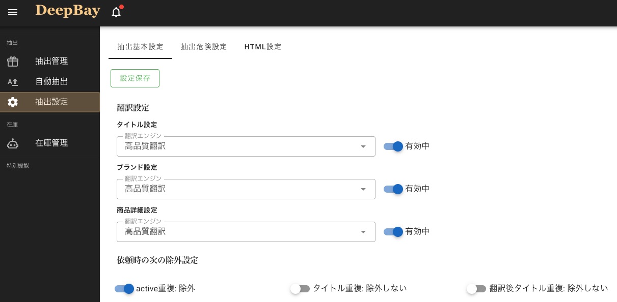 翻訳設定では、タイトル・ブランド・商品詳細の翻訳品質を設定できます。