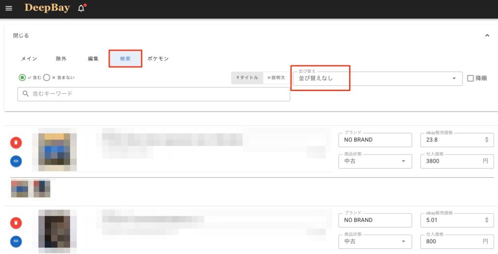 編集前に、検索タブの並び替えを「並び替えなし」に設定してください。