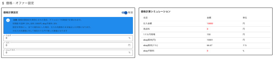 ※詳細はツール内の説明または動画をご確認ください。 - eBayで作成したポリシーを価格範囲ごとに紐づけ、出品時に自動で切り替わります。