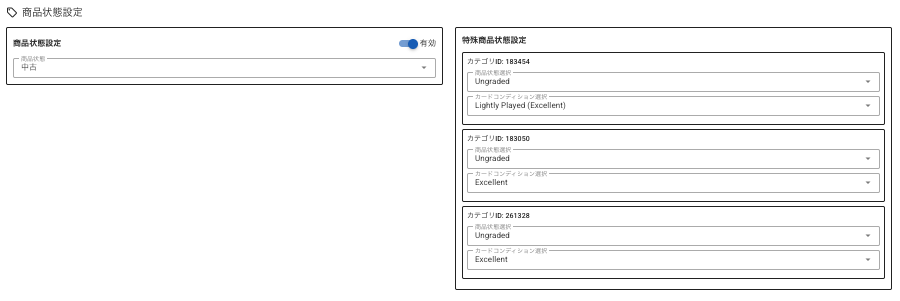 - カテゴリ番号、出品セラー、一括編集設定を選択します。